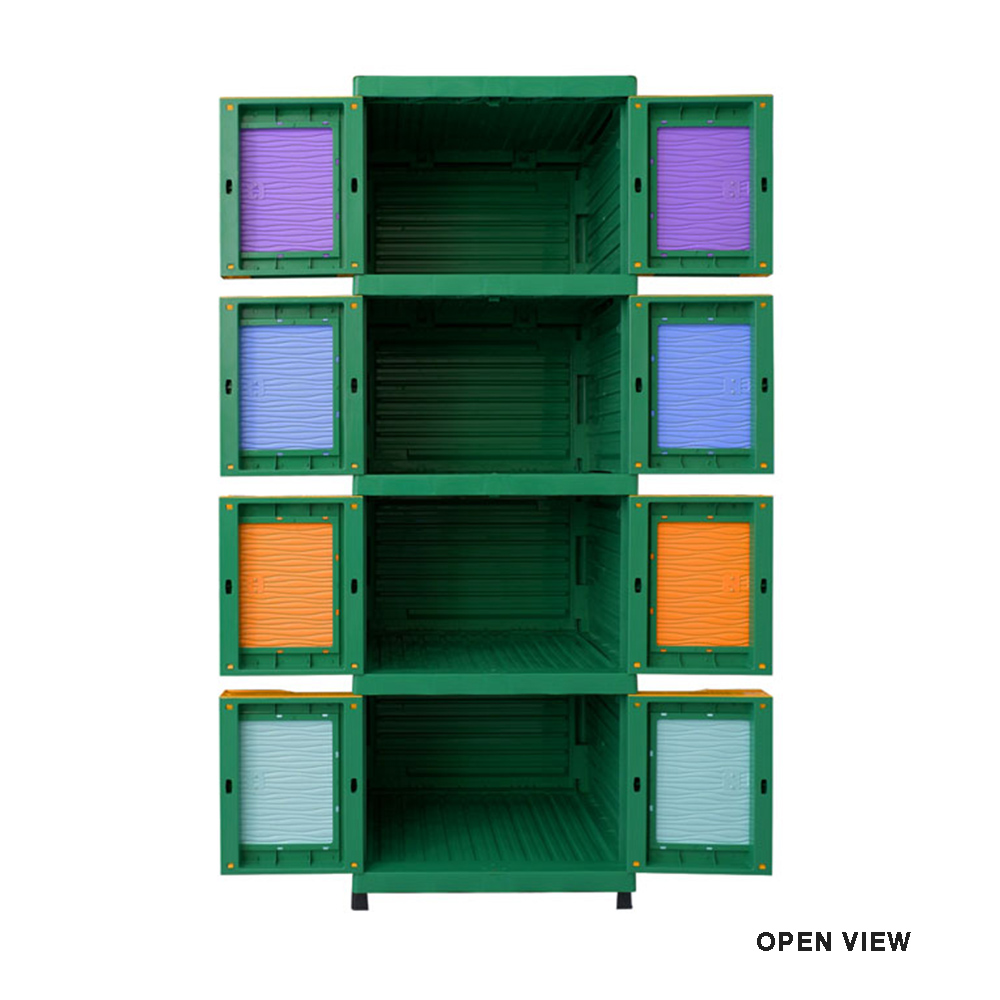 Desain pintu lemari plastik dengan background yang tersambung ini telah mendapat Hak Paten Sederhana dari DJHKI RI dengan Nomor Paten IDS000001389