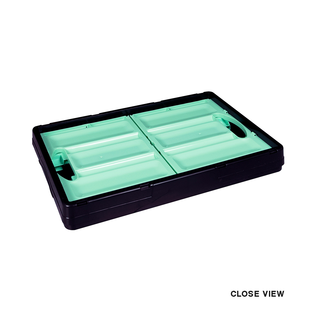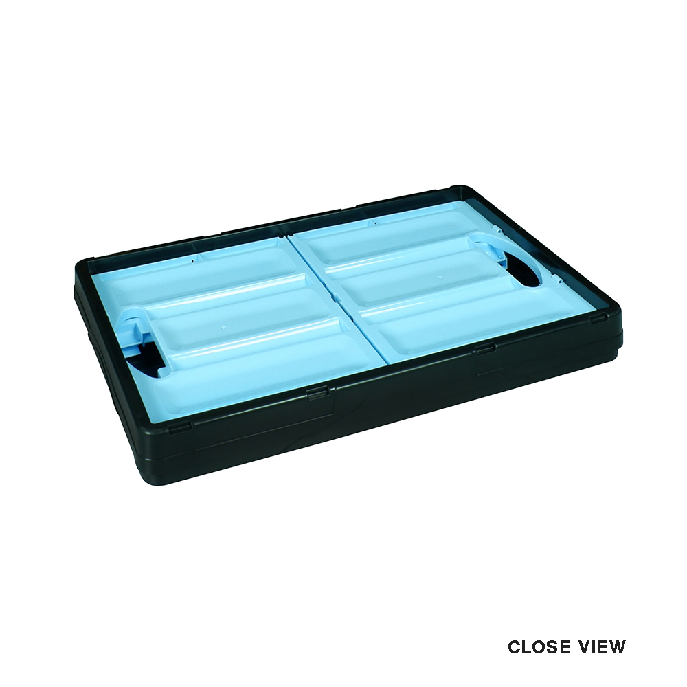 Folding Box 600 adalah box yang mudah dibersihkan, Ringkas, kuat, bisa ditumpuk, Mudah disimpan, serba guna, dan mudah dilipat. Ukuran terbuka: 52x36x29 cm Ukuran terlipat: 52x26x7 cm