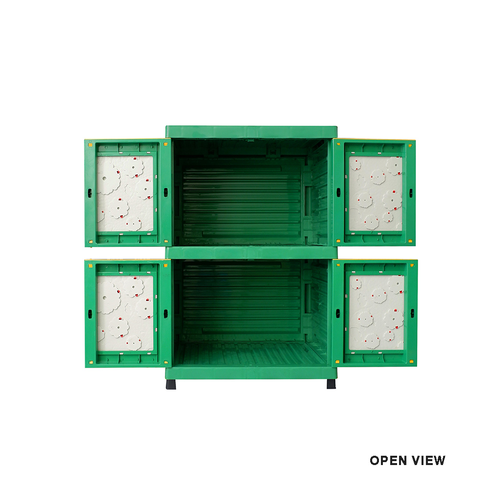 Desain pintu lemari plastik dengan background yang tersambung ini telah mendapat Hak Paten Sederhana dari DJHKI RI dengan Nomor Paten IDS000001389
