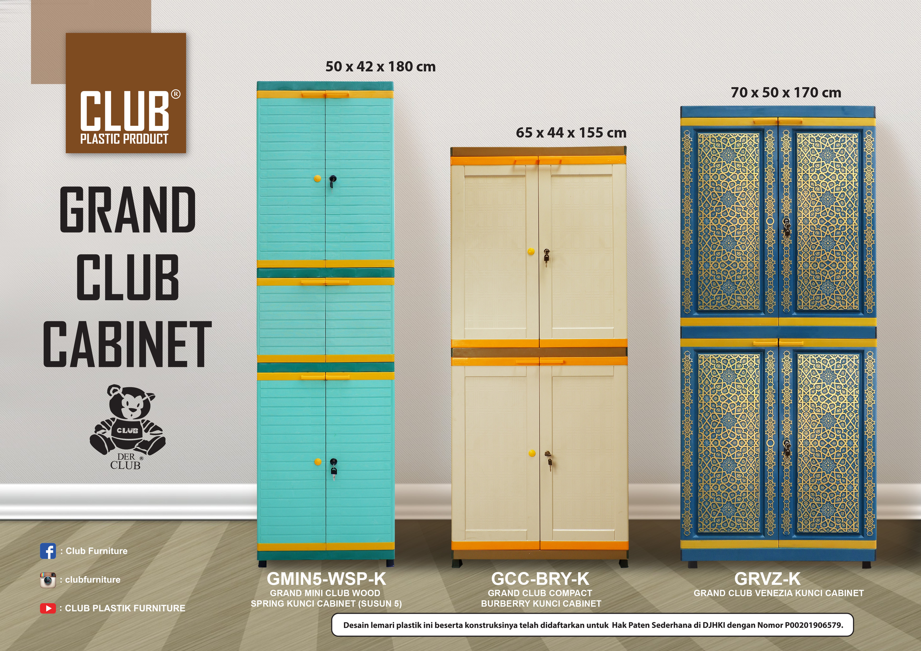 Desain lemari plastik ini beserta konstruksinya telah didaftarkan untuk Hak Paten Sederhana di DJHKI dengan Nomor P00201906579