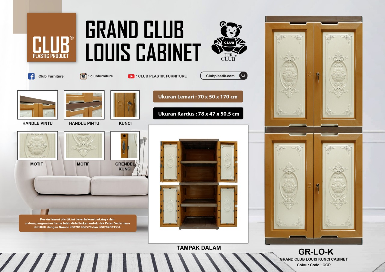 Desain lemari plastik ini beserta konstruksinya dan sistem penguncian frame telah didaftarkan untuk Hak Paten Sederhana di DJHKI dengan Nomor P00201906579 dan S002003334