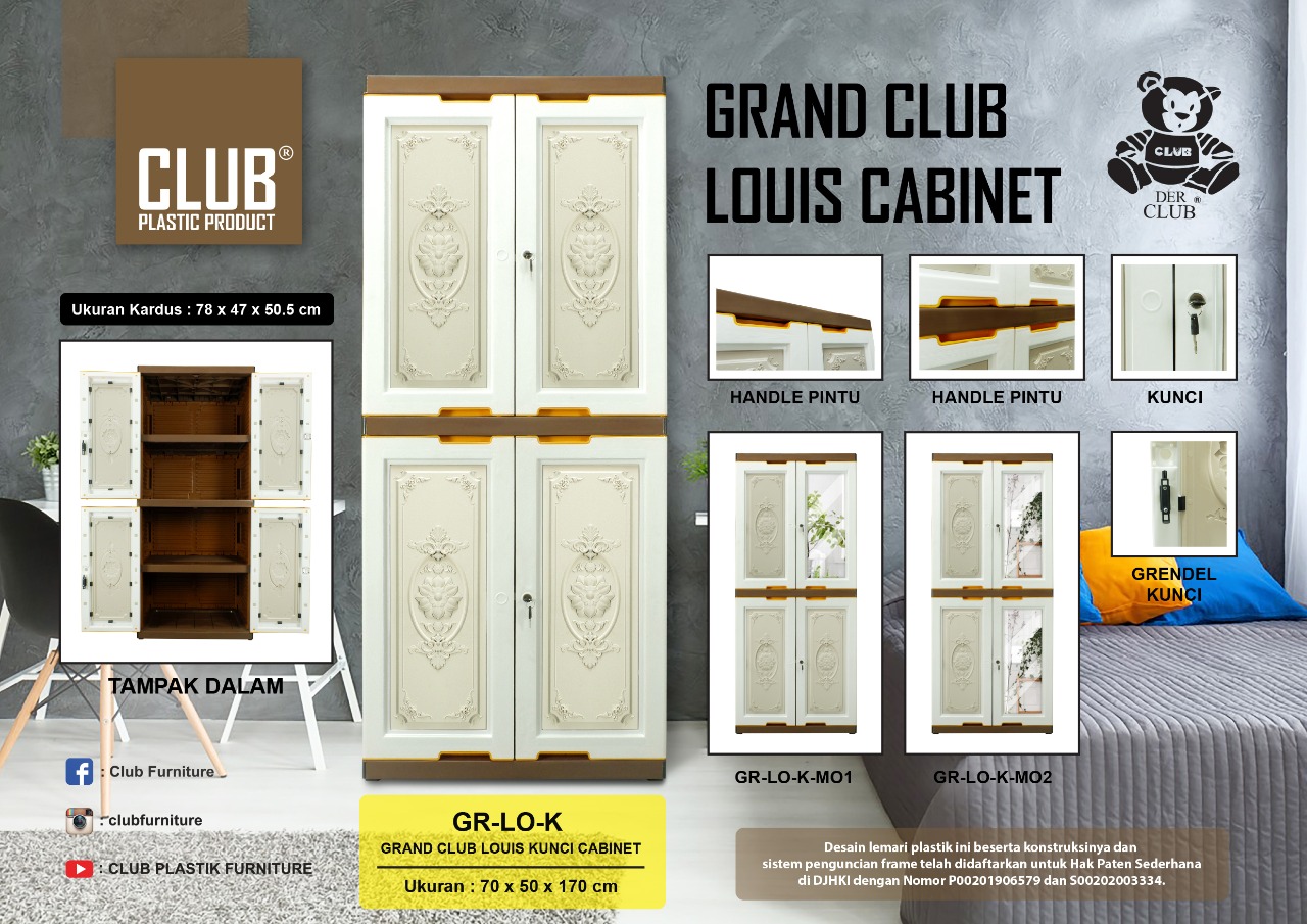 Desain lemari plastik ini beserta konstruksinya dan sistem penguncian frame telah didaftarkan untuk Hak Paten Sederhana di DJHKI dengan Nomor P00201906579 dan S002003334