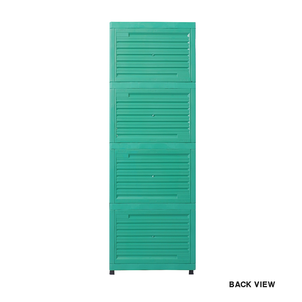 Desain pintu lemari plastik dengan background yang tersambung ini telah mendapat Hak Paten Sederhana dari DJHKI RI dengan Nomor Paten IDS000001389