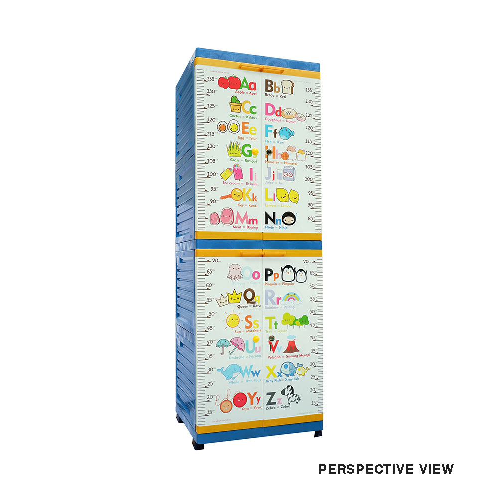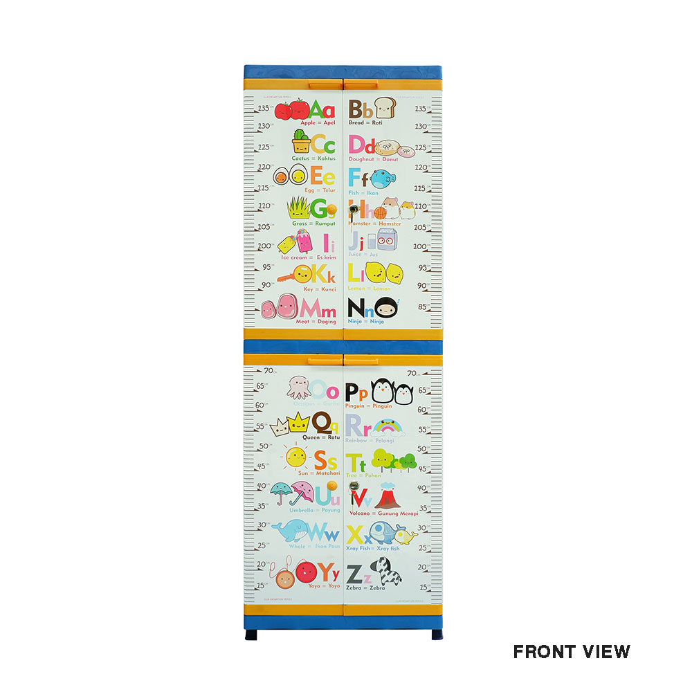 CLUB Grand Mini E-Printing hadir dengan cetakan gambar terbaru dengan warna yang cerah dan colorful. Dilengkapi gambar alphabet dengan karakter yang lucu dan pengukur tinggi badan anak, tentu akan membuat lemari ini disukai oleh si kecil.