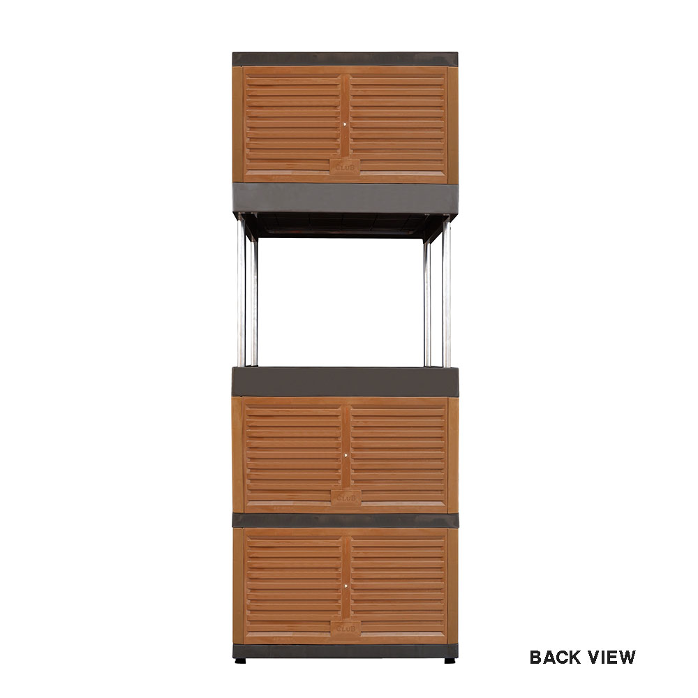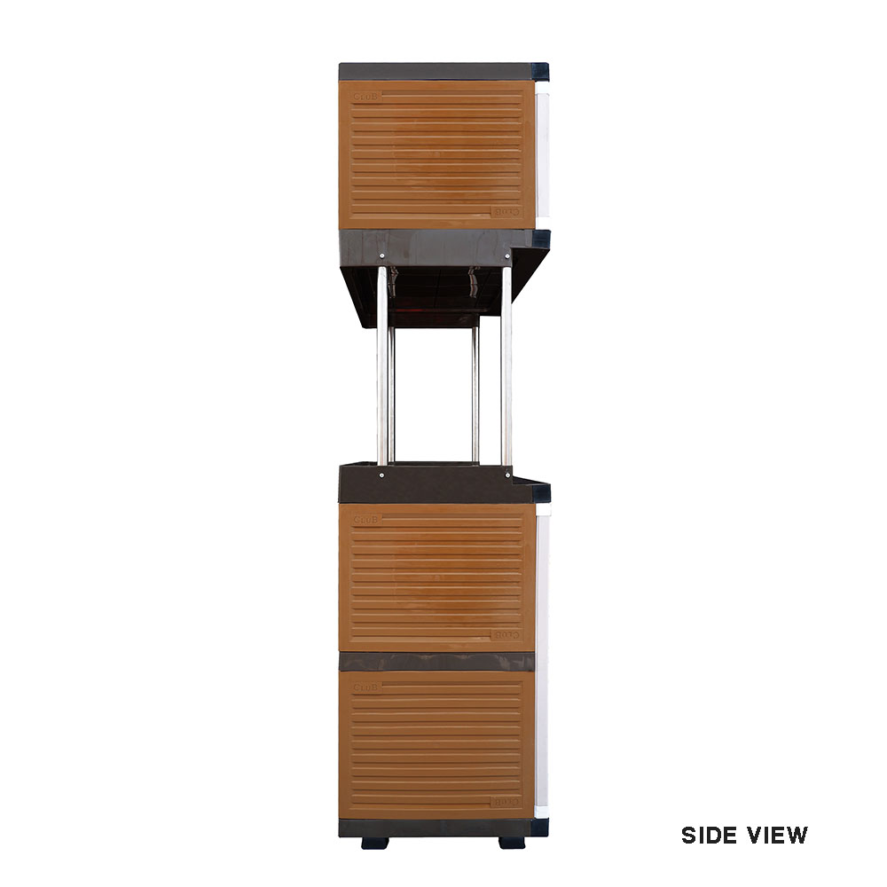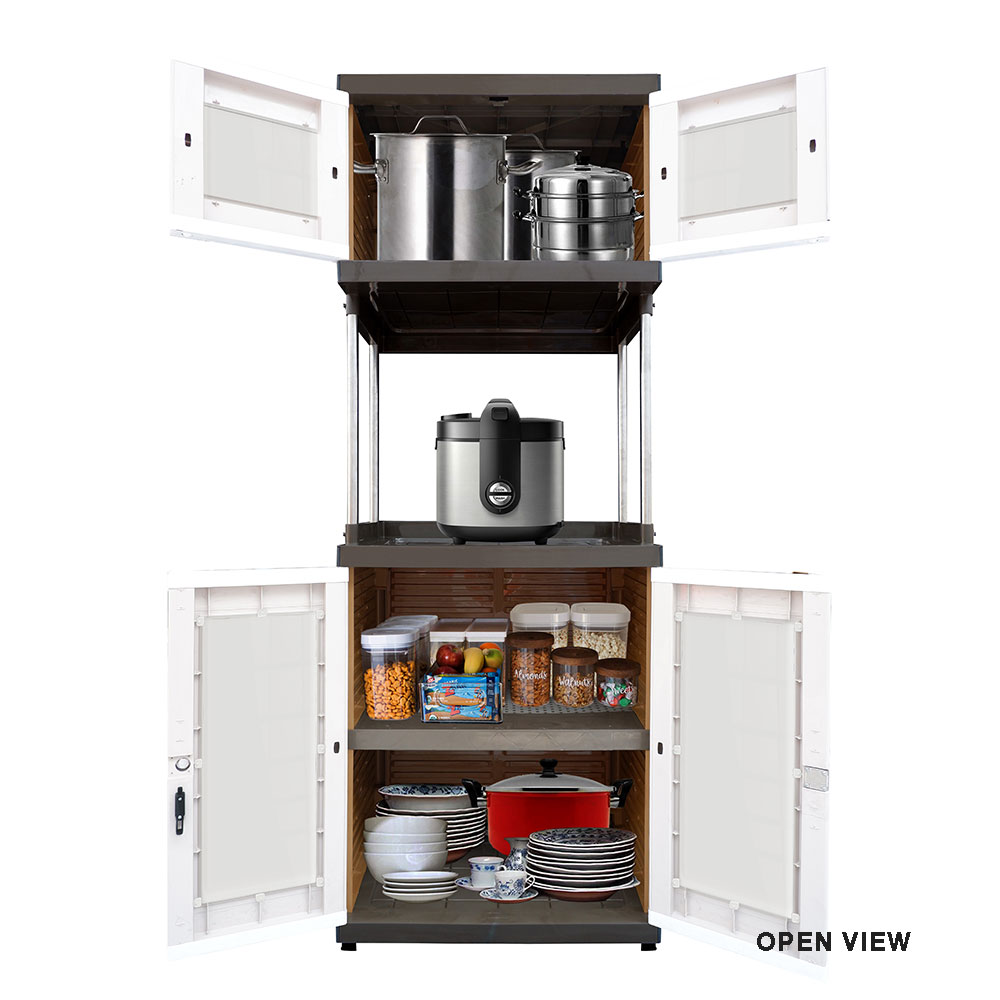CLUB Kise Kitchen Set hadir dengan varian Wood, desain tekstur kayu pada pintunya dipadukan dengan kaca transparan untuk memudahkan mencari perlengkapan dan peralatan dapur anda.