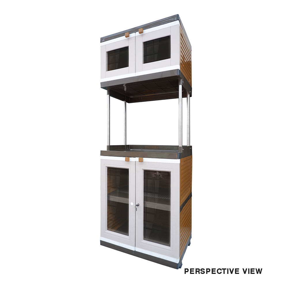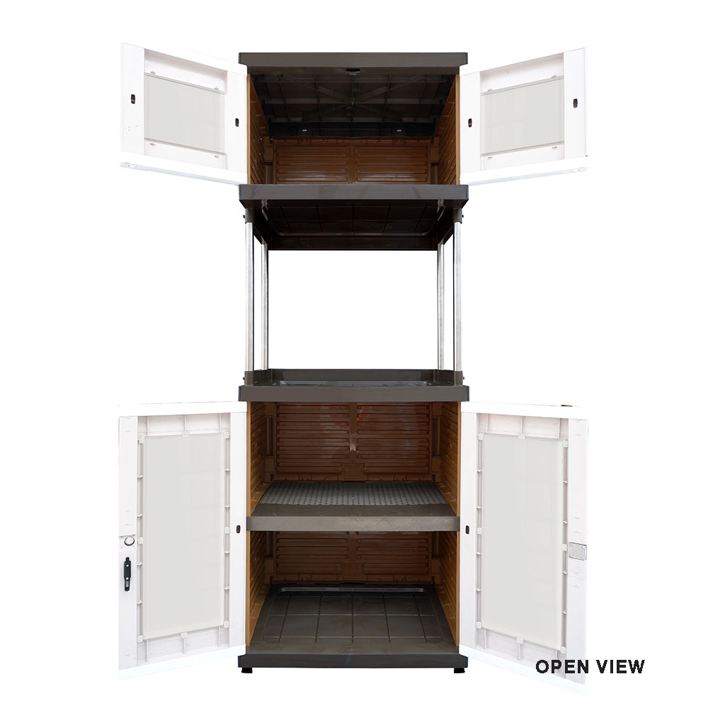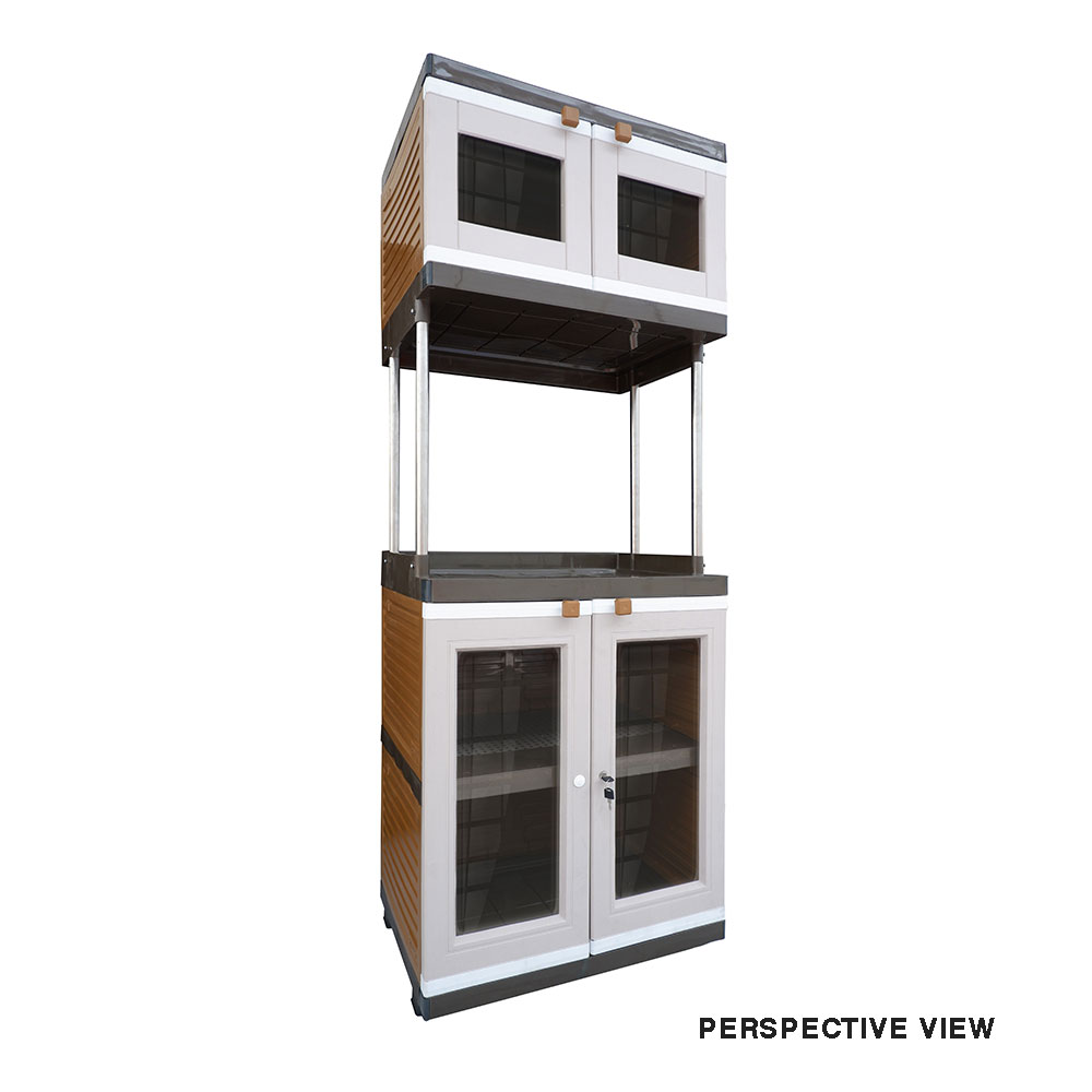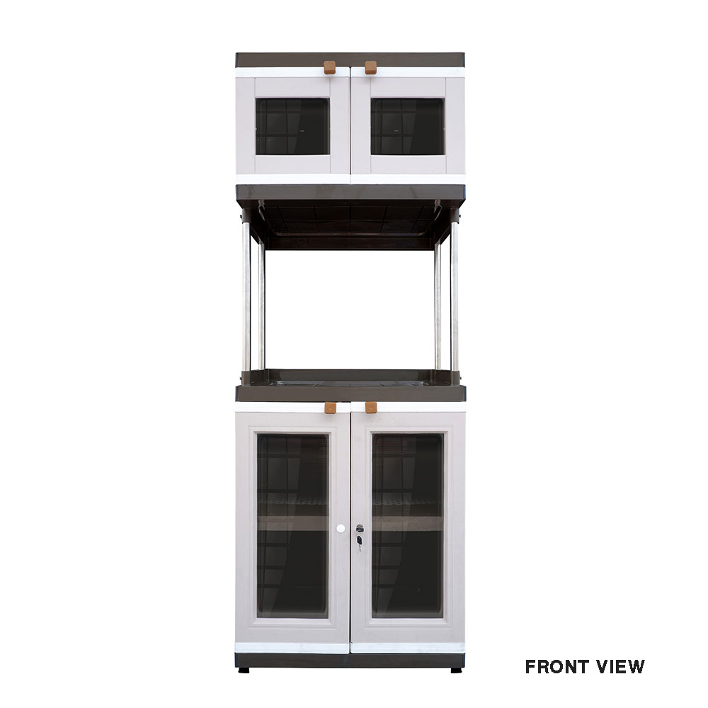 CLUB Kise Kitchen Set hadir dengan varian Wood, desain tekstur kayu pada pintunya dipadukan dengan kaca transparan untuk memudahkan mencari perlengkapan dan peralatan dapur anda.