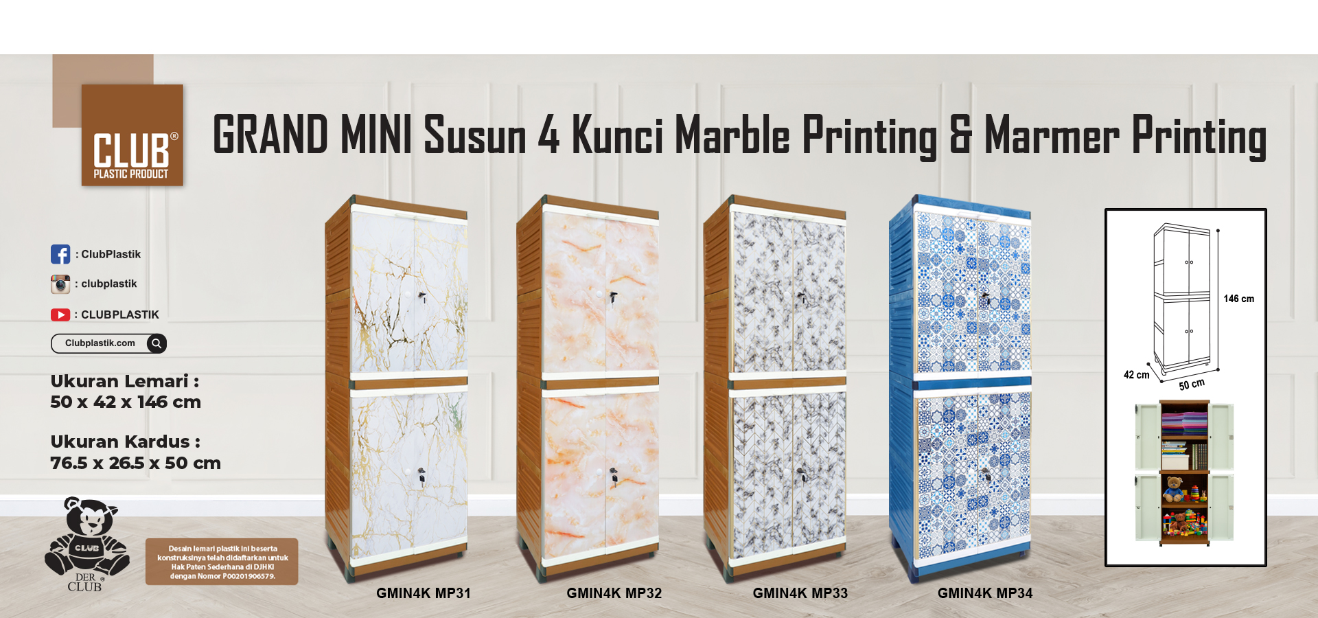 Dengan ukuran yang ringkas dan compact, CLUB Grand Mini Marble & Marmer Printing sangatlah cocok untuk ditempatkan di rumah, apartemen, maupun kosan anda. CLUB Grand Mini Marble & Marmer Printing juga tersedia dalam berbagai pilihan motif marmer lainnya.
