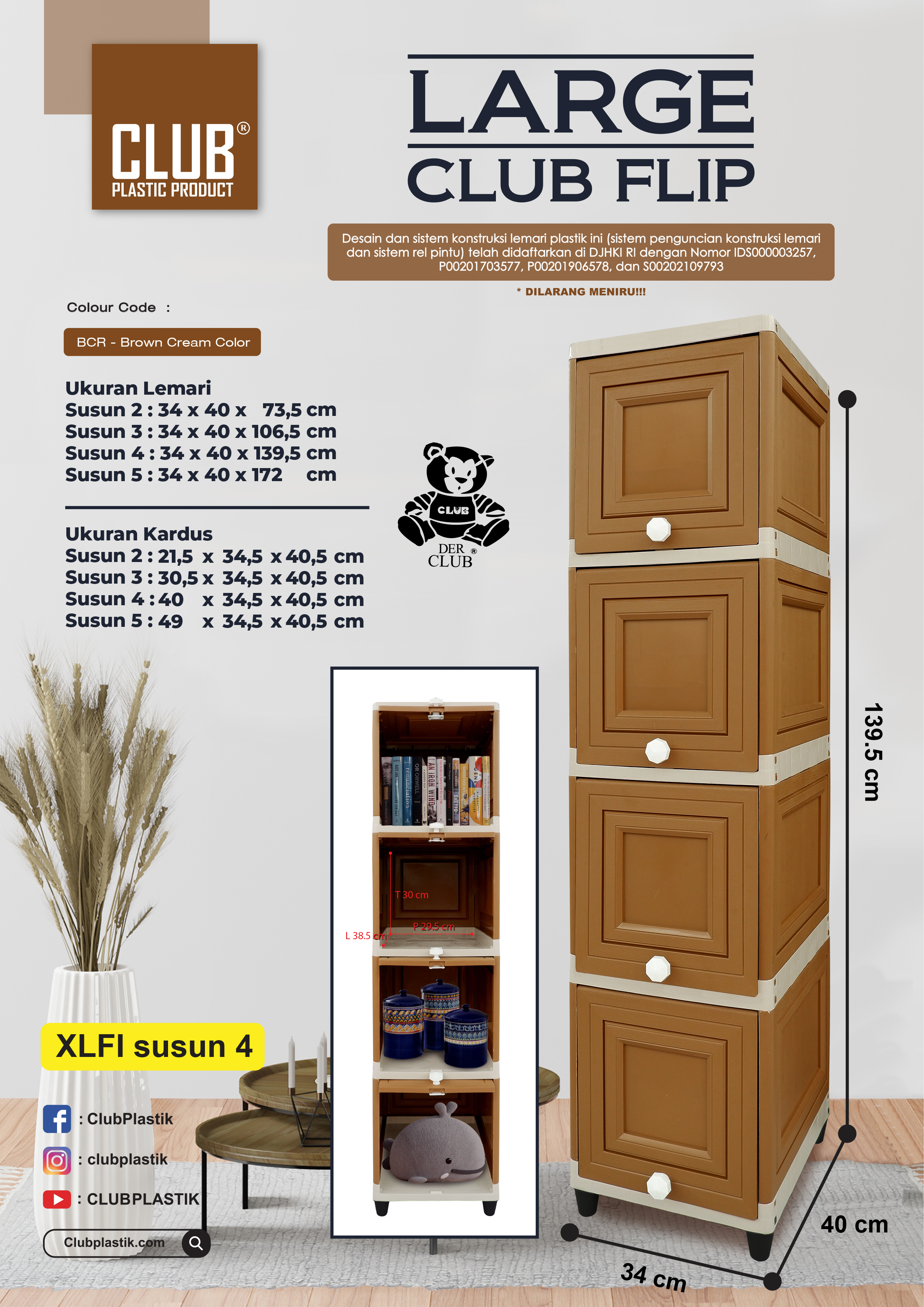 Dengan ukuran yang ringkas dan compact, Large Club Flip Single sangatlah cocok untuk ditempatkan di rumah, apartemen, maupun kosan anda. Large Club Flip Single juga tersedia dalam susun 2 hingga susun 5.
