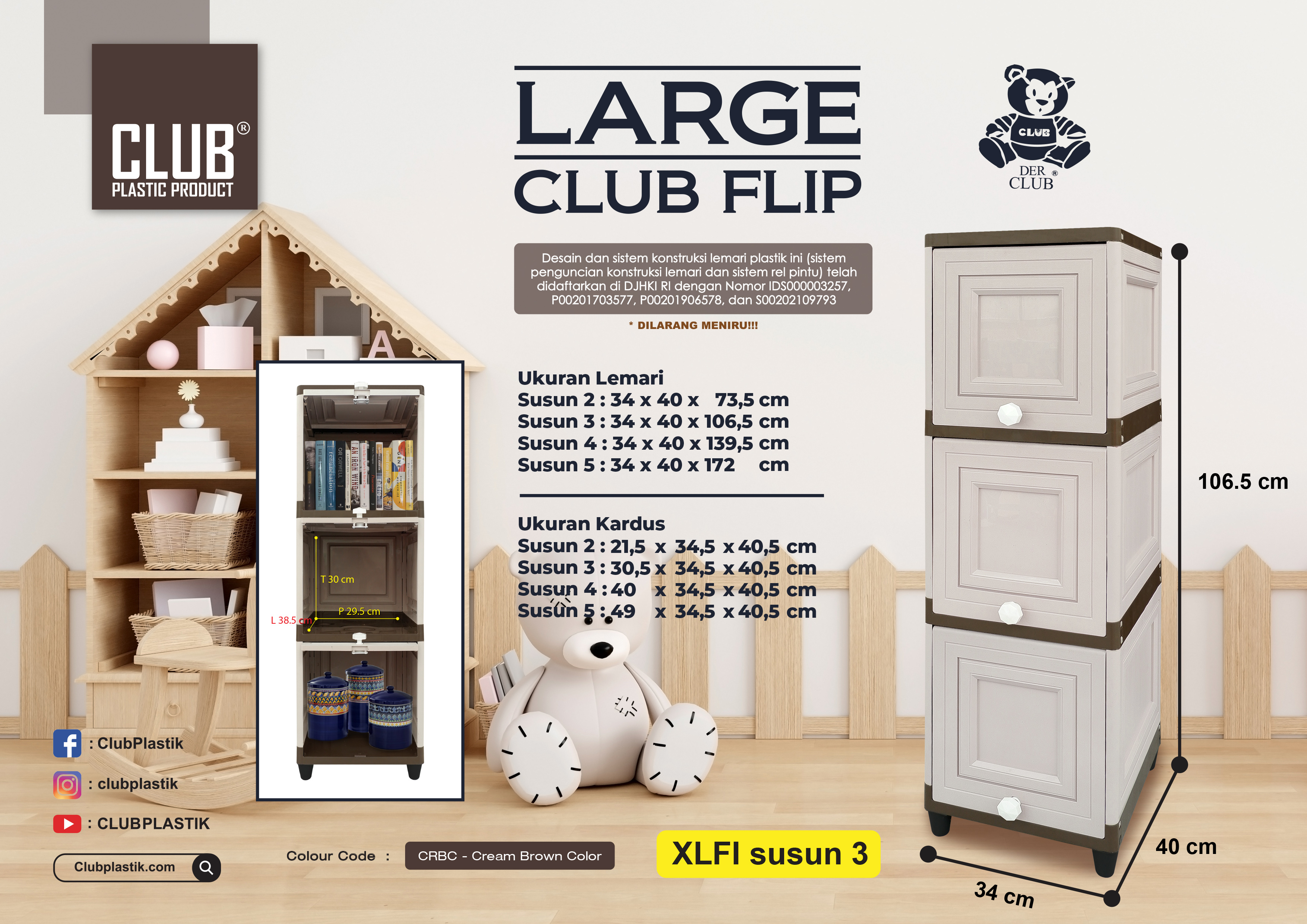 Dengan ukuran yang ringkas dan compact, Large Club Flip Single sangatlah cocok untuk ditempatkan di rumah, apartemen, maupun kosan anda. Large Club Flip Single juga tersedia dalam susun 2 hingga susun 5.