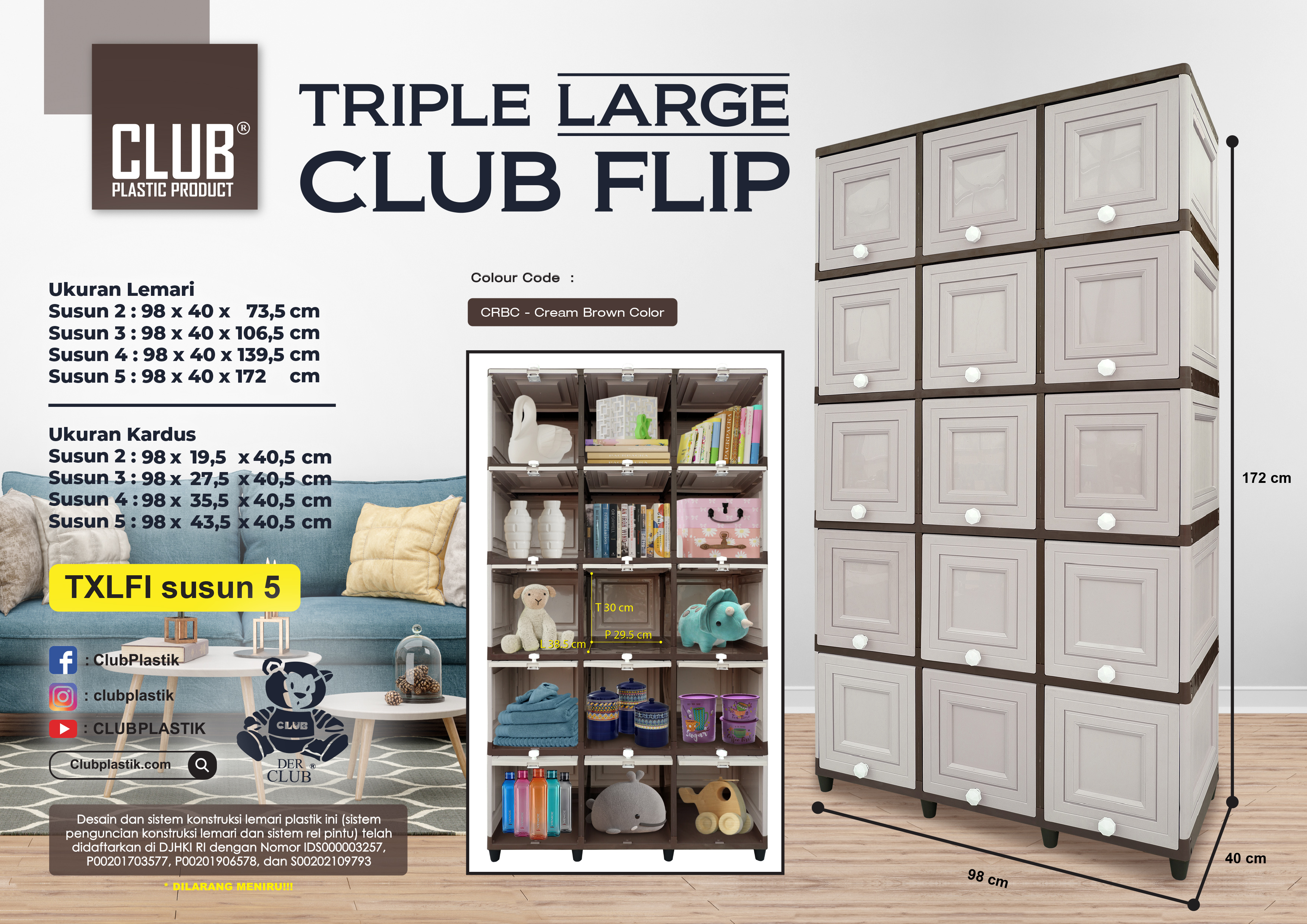 Dengan ukuran yang ringkas dan compact, Triple Large Club Flip sangatlah cocok untuk ditempatkan di rumah, apartemen, maupun kosan anda. Triple Large Club Flip juga tersedia dalam susun 2 hingga susun 5.