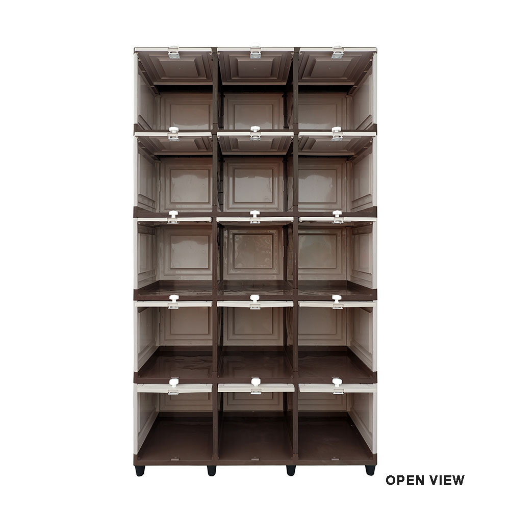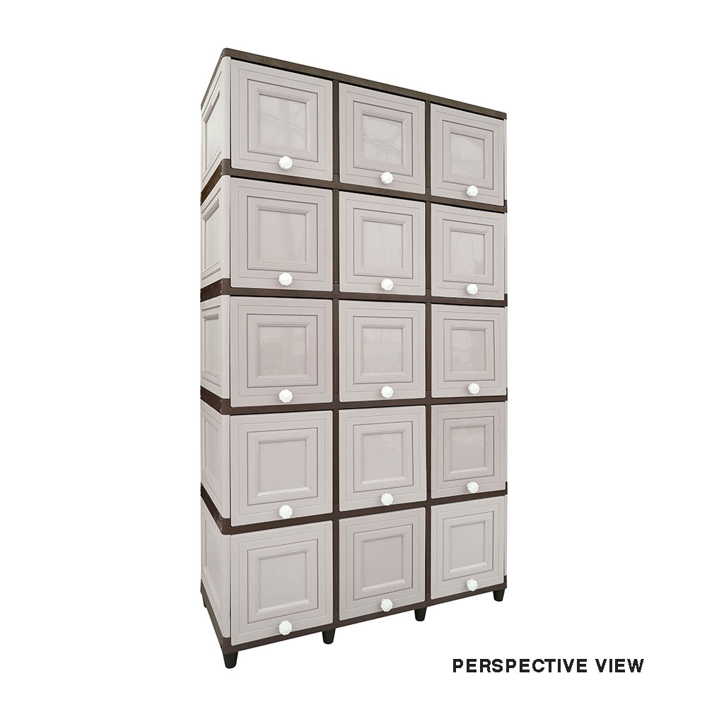 Triple Large Club Flip hadir dengan varian Cream Brown Color, tampilan modern dengan nampan berwarna coklat dan dinding serta pintu lemari berwarna cream cerah dipadukan dengan desain lemari dominan berbentuk kotak yang minimalis untuk menambah estetika hunian anda.