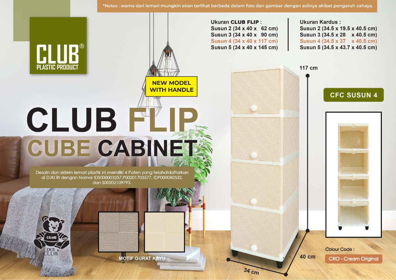 Berfungsi sangat baik untuk menyimpan barang-barang kesayangan anda, seperti pakaian, perlengkapan dapur, buku, mainan anak, dan lain-lain sesuai kebutuhan anda. Dengan ukuran yang ringkas dan compact, CLUB Flip sangatlah cocok untuk ditempatkan di rumah, apartemen, maupun kosan anda.