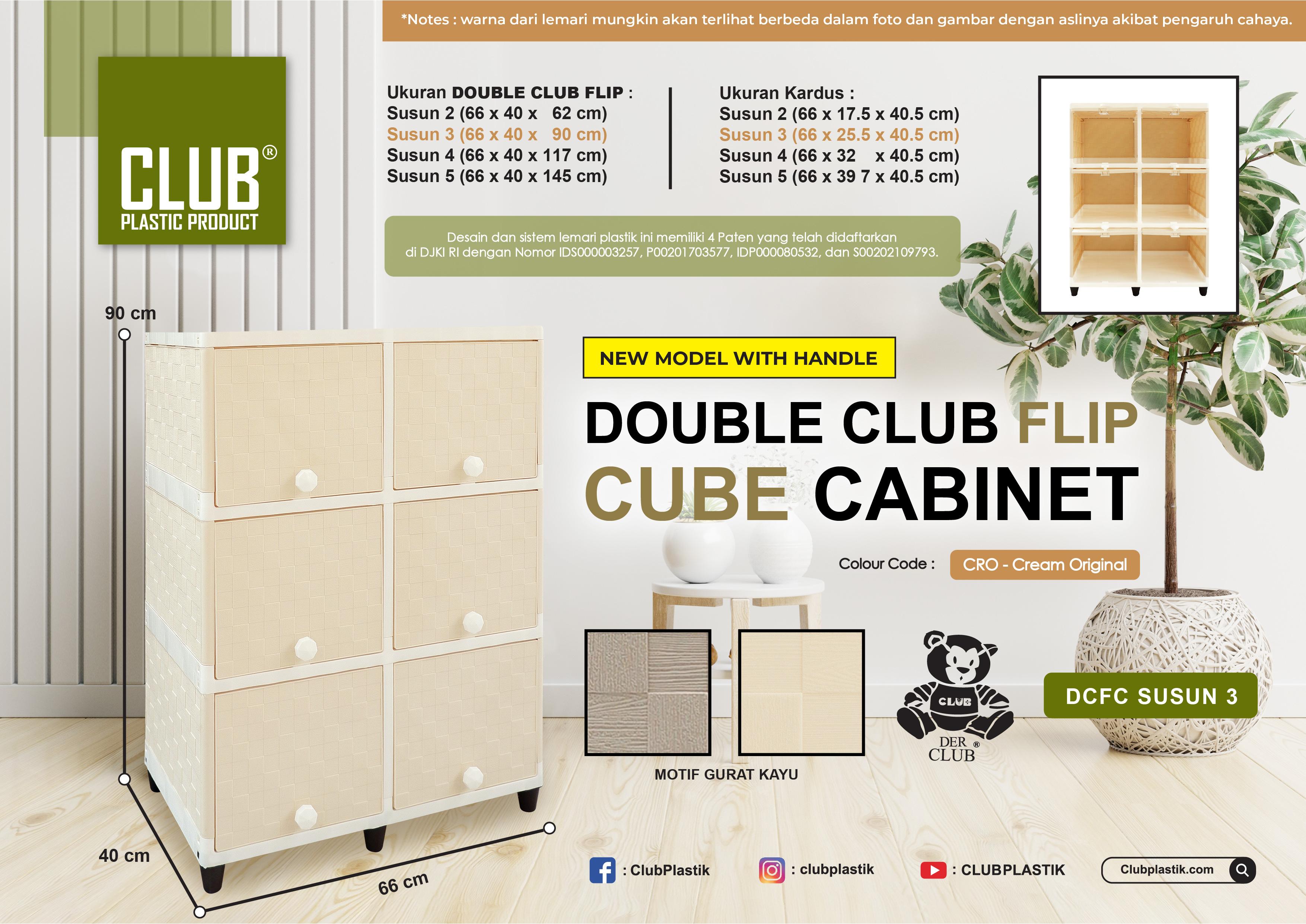 Berfungsi sangat baik untuk menyimpan barang-barang kesayangan anda, seperti pakaian, perlengkapan dapur, buku, mainan anak, dan lain-lain sesuai kebutuhan anda. Dengan ukuran yang ringkas dan compact, CLUB Flip sangatlah cocok untuk ditempatkan di rumah, apartemen, maupun kosan anda.