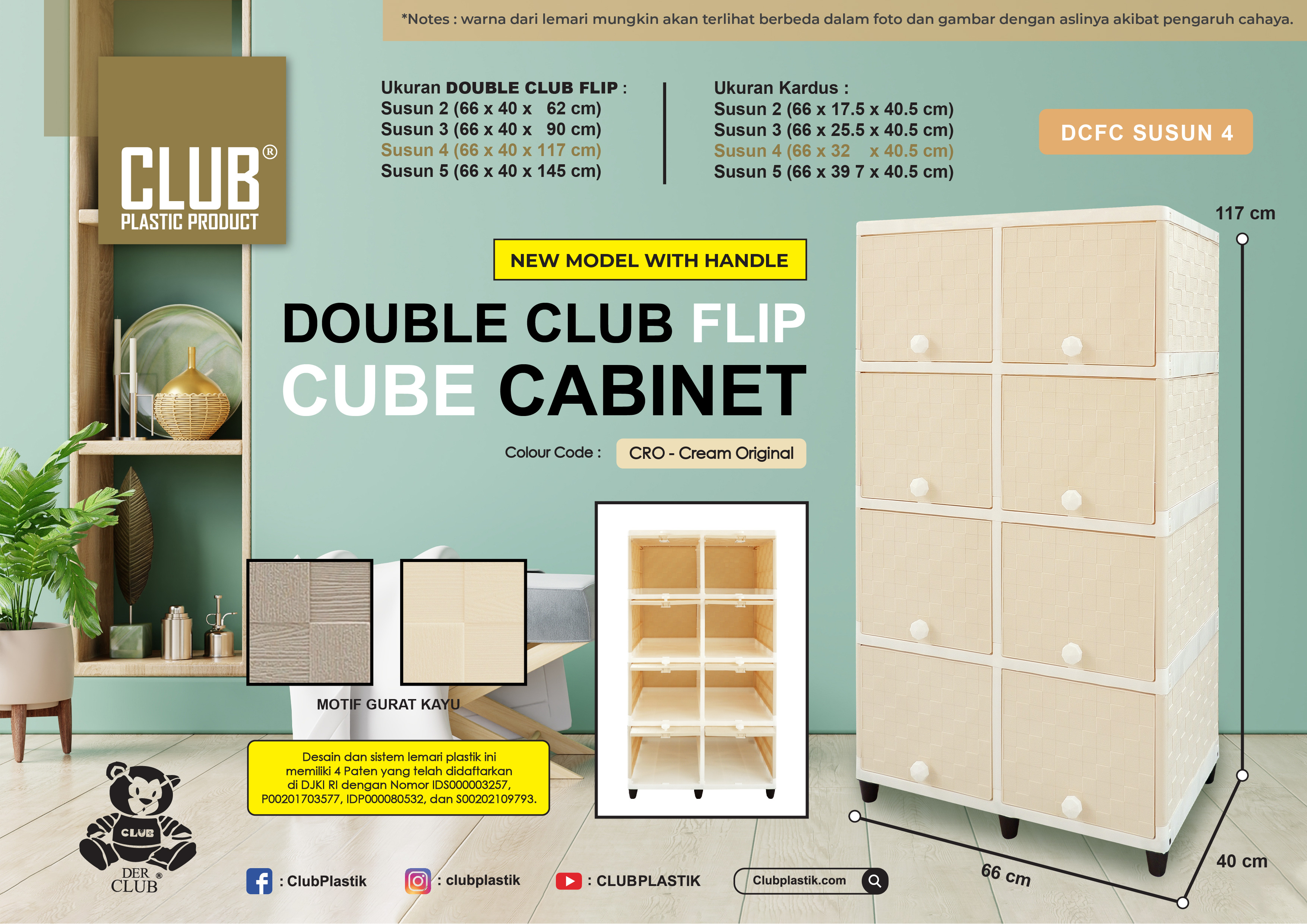 Berfungsi sangat baik untuk menyimpan barang-barang kesayangan anda, seperti pakaian, perlengkapan dapur, buku, mainan anak, dan lain-lain sesuai kebutuhan anda. Dengan ukuran yang ringkas dan compact, CLUB Flip sangatlah cocok untuk ditempatkan di rumah, apartemen, maupun kosan anda.