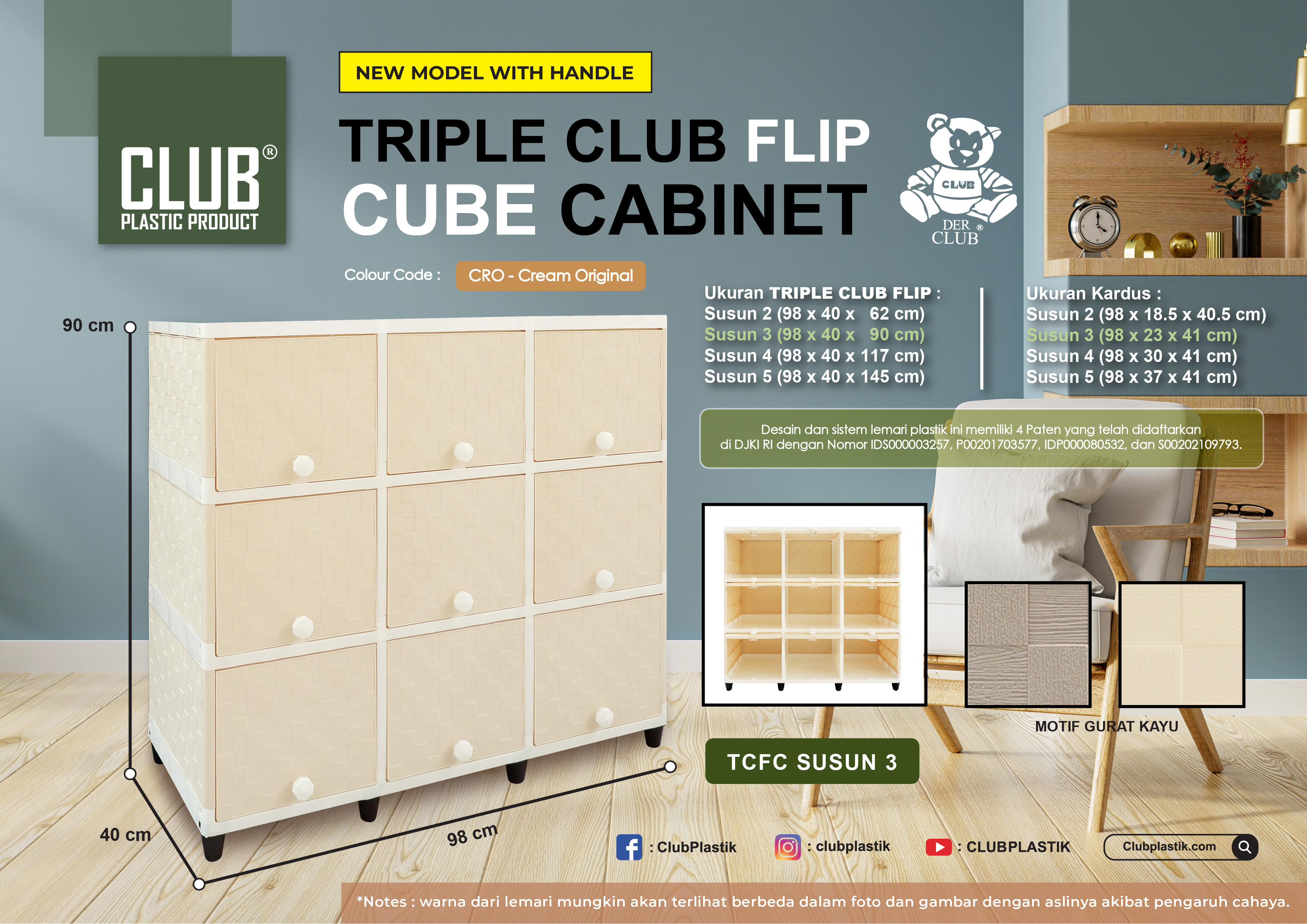 Berfungsi sangat baik untuk menyimpan barang-barang kesayangan anda, seperti pakaian, perlengkapan dapur, buku, mainan anak, dan lain-lain sesuai kebutuhan anda. Dengan ukuran yang ringkas dan compact, CLUB Flip sangatlah cocok untuk ditempatkan di rumah, apartemen, maupun kosan anda.