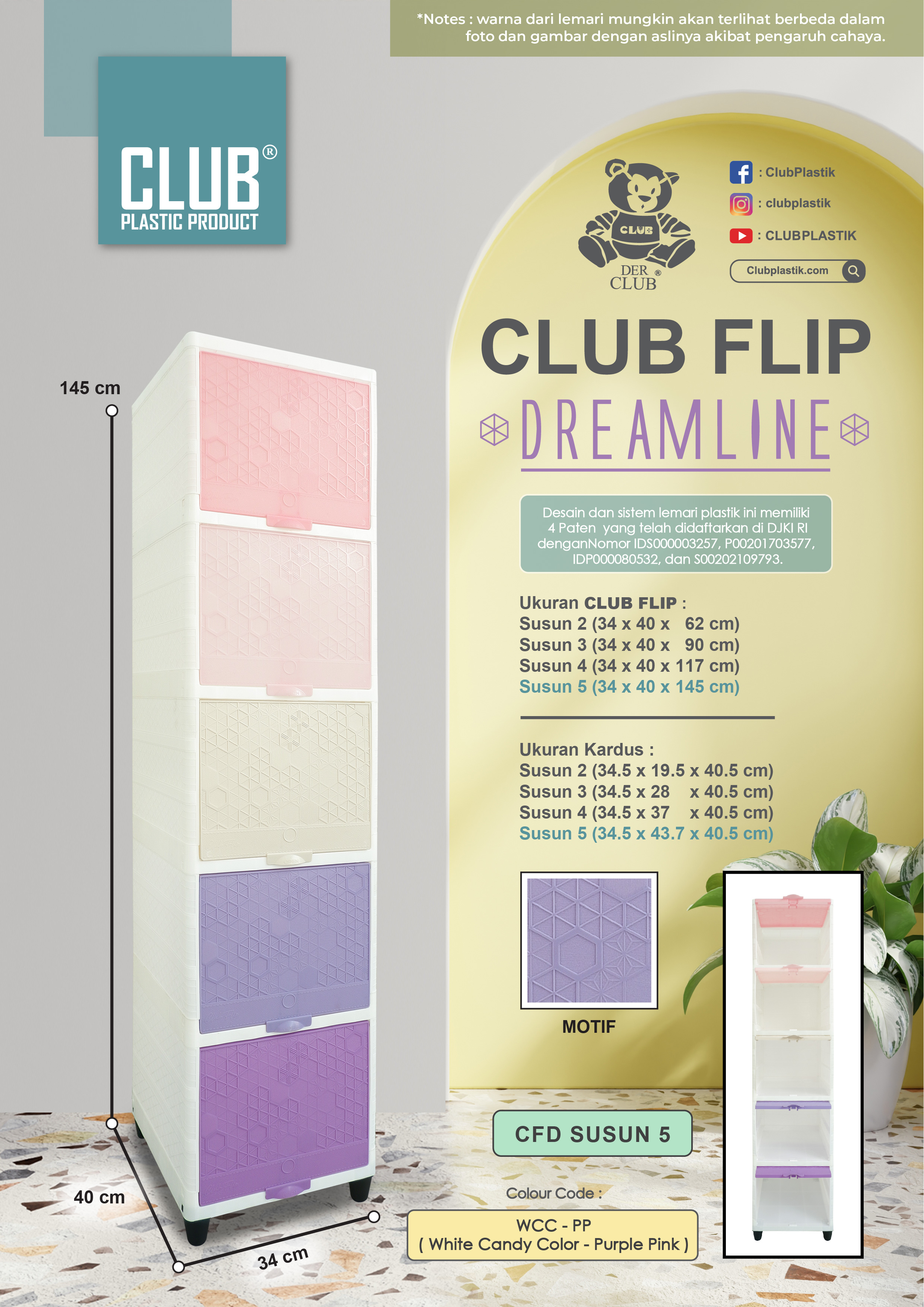 Berfungsi sangat baik untuk menyimpan barang-barang kesayangan anda, seperti pakaian, perlengkapan dapur, buku, mainan anak, dan lain-lain sesuai kebutuhan anda. Dengan ukuran yang ringkas dan compact, CLUB Flip sangatlah cocok untuk ditempatkan di rumah, apartemen, maupun kosan anda.