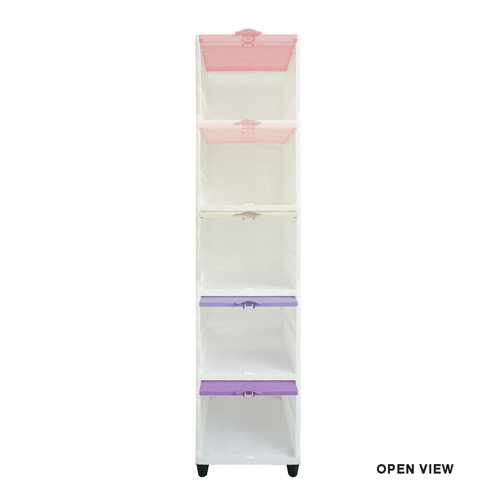 CLUB Flip hadir dengan model pintu geser/sliding yang lebih modern dan berbeda seperti lemari pada umumnya. Desain kombinasi warna yang manis dan cerah di bagian pintunya untuk menambah estetika dan kesan ceria di hunian anda.