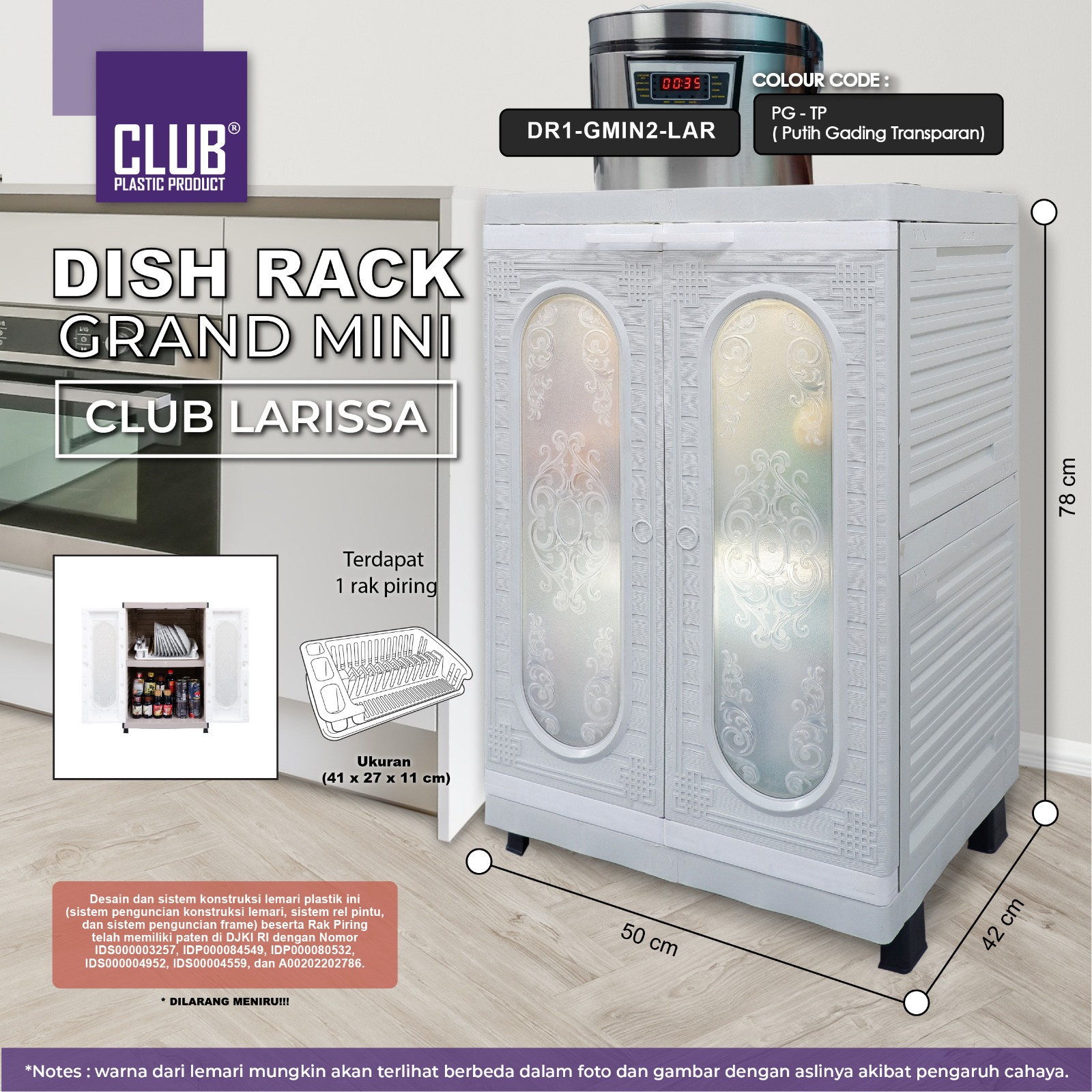Dish Rack Grand Mini Club Larissa Putih Gading (DR1-GMIN2-LAR-TP)