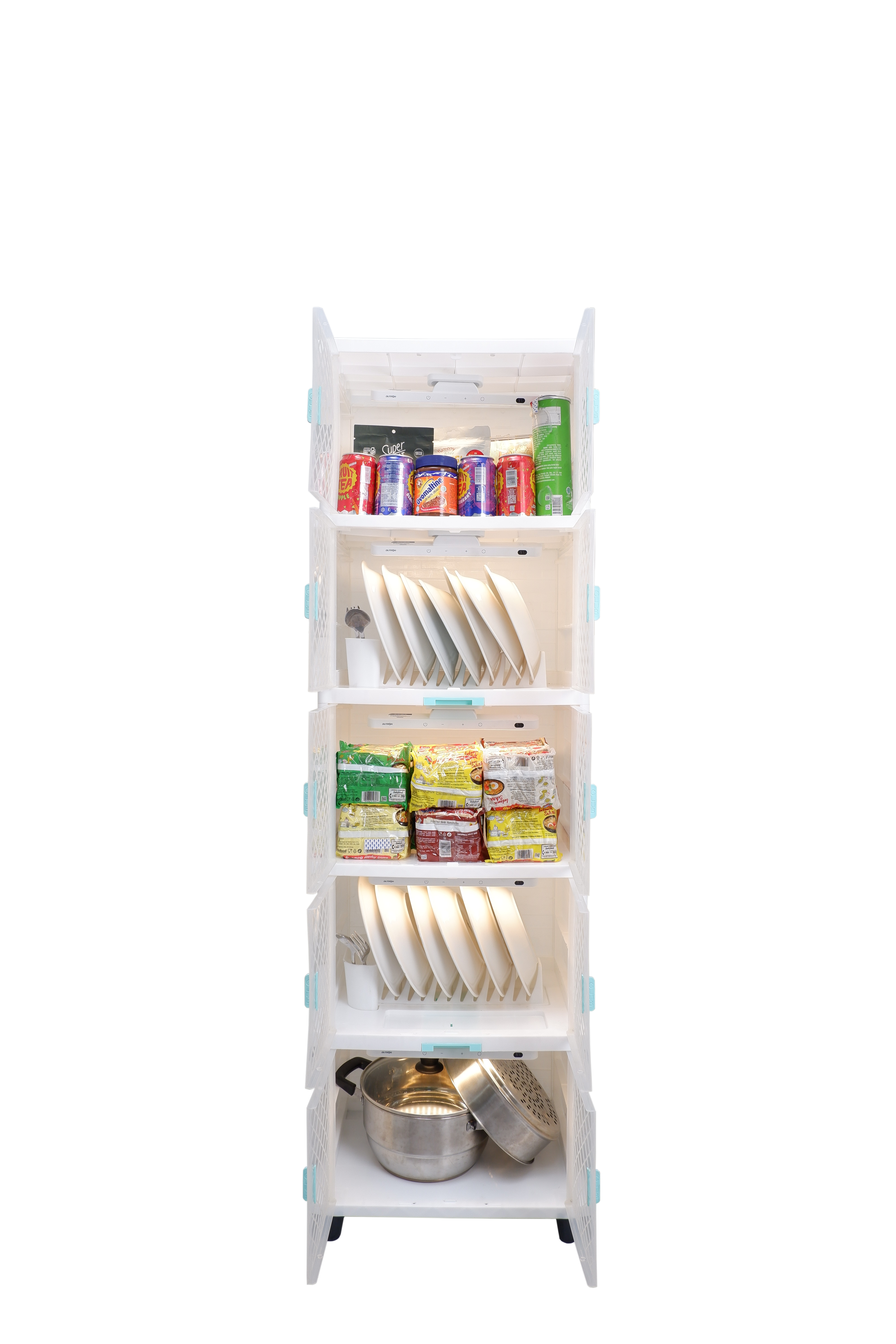 Dish Rack kini hadir dengan ukuran lemari 5 pintu yang dibuka kanan dan kiri serta disediakan tempat penampungan air yang sangat praktis dan sangat modern. Didesain dengan motif luxury Club dan kombinasi warna putih asli yang bersih dan cerah dan gagang pintu dengan warna warna pastel yang menambah estetika dan kesan modern di hunian anda.