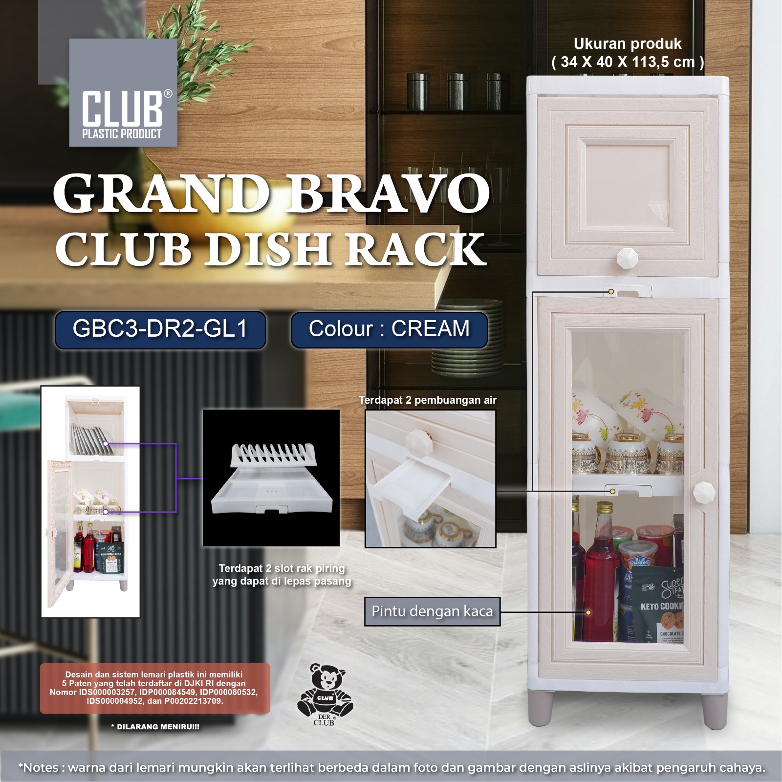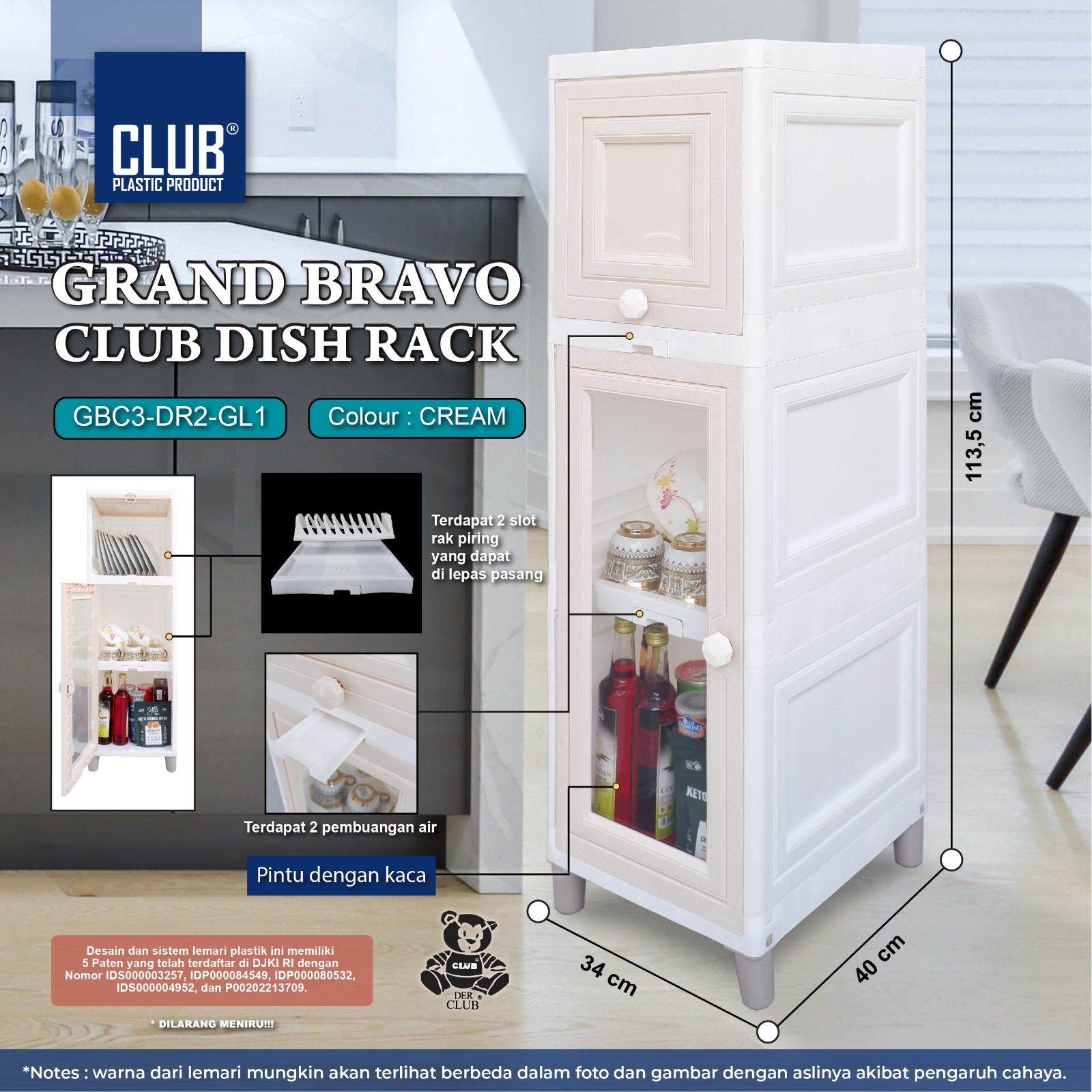 Grand Bravo Club Dish Rack merupakan lemari piring yang hadir dengan warna yang sangat bervariasi, dua rak piring, serta pintu kaca agar memudahkan melihat isi lemari piring. Kombinasi warna dan motif yang minimalis akan menambah estetika di dapur kesayangan anda.